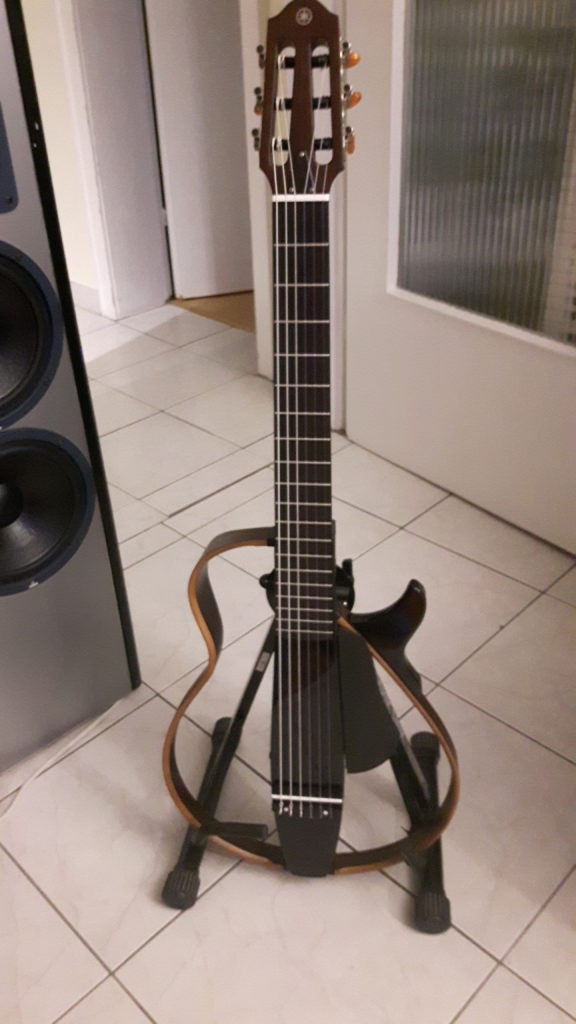 Hier ein Sonderform der modernen Yamaha Silent-Gitarre.